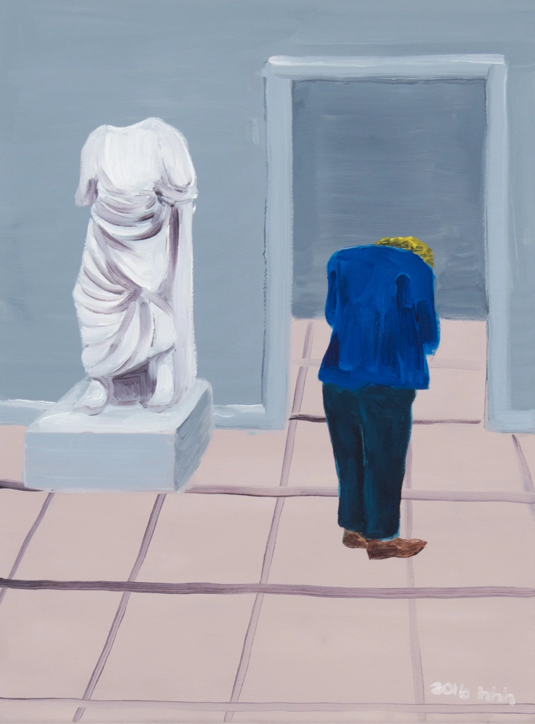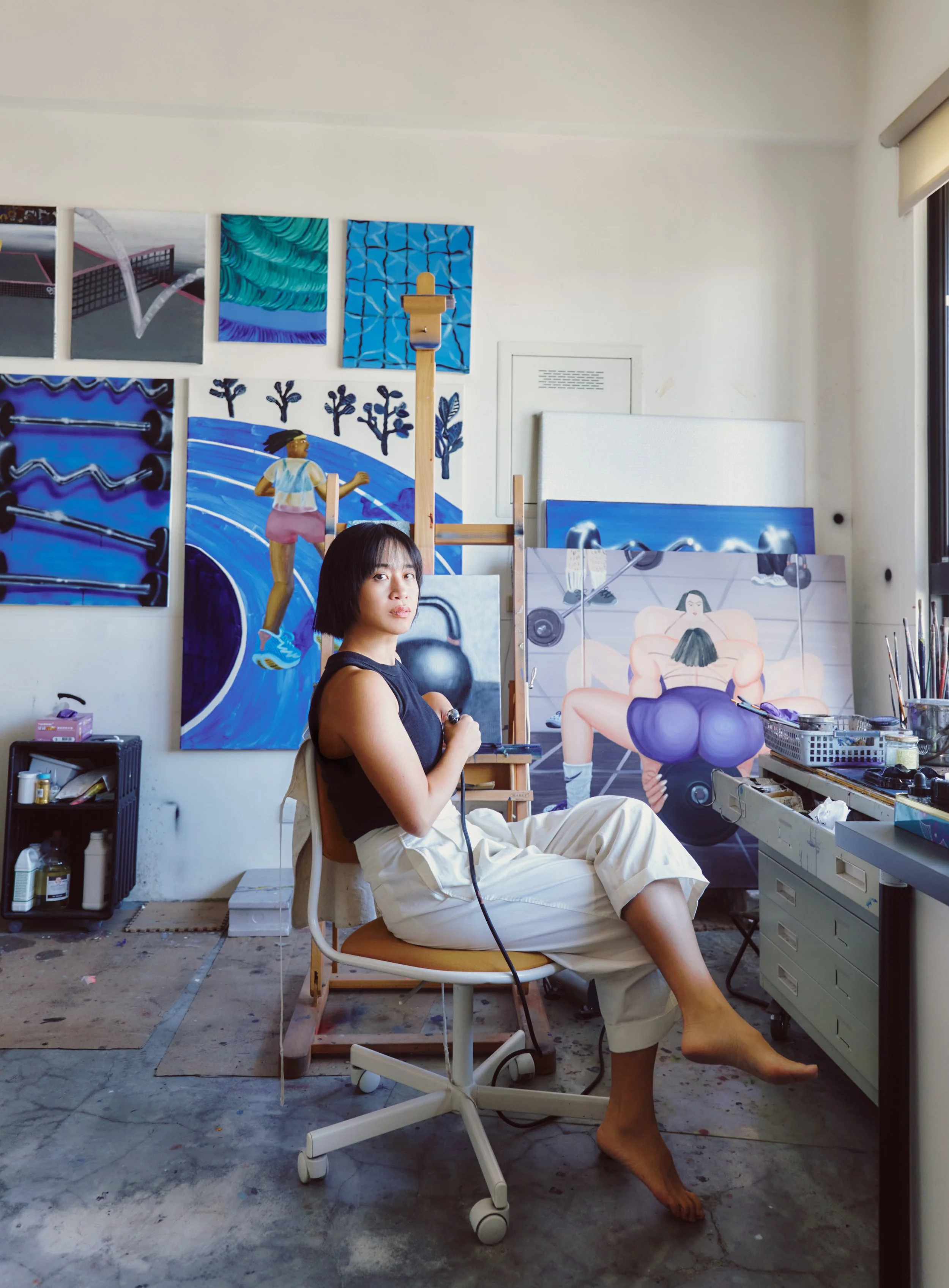 Blending humor with critical observation, she explores themes of social behavior, conformity, and the psychological nuances of contemporary urban life. Her compositions are characterized by sharp detail, flattened perspectives, and a distinctive visual language that moves between playfulness and discomfort.